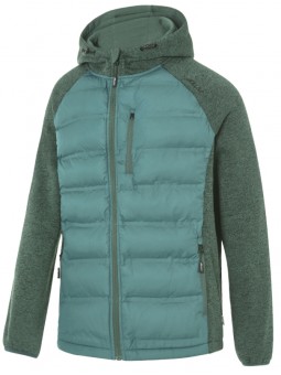 Una chaqueta hybrida con dos tejidos que le dan personalidad. El interior perchado favorece la calidez en su uso. Tiene una capucha fija ajustable con tancas. Dos bolsillos laterles con cremallera y uno en el pecho. Los puños tienen un vivo elástico para mayor comodidad. - Tejido exterior 1: Polylite Tejido ultra ligero. - Tejido exterior 2: PuntoKnit, tejido de punto eástico.Generalmente compuesto de la mezcla de fibras sintéticas y naturales. - Acolchado: Relleno aislante Megatherm con una eficiencia térmica excepcional. - Forro: Inner fleece,parte interior con acabado perchado que retiene el calor corporal.