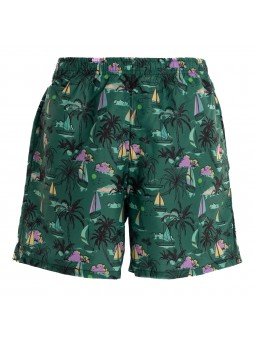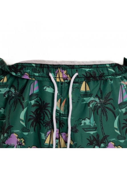 Sumérgete en el verano con estilo con este bañador de la marca softee, diseñado para quienes buscan comodidad y un look vibrante. su estampado tropical con palmeras, veleros y ambiente de playa en tonos verde oscuro, amarillo y lila te transportará a la costa en cada uso.