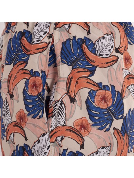 Dale un toque divertido y vibrante a tu look de playa con el bañador softee de estampado de plátanos. su diseño en tonos coral, naranja y azul destaca por su frescura y originalidad, perfecto para quienes buscan un estilo desenfadado. fabricado con materiales ligeros y de secado rápido, este bañador ofrece máxima comodidad. además, su cintura elástica y ajustable con cordón garantiza un ajuste perfecto para todo tipo de cuerpo. ideal para la playa, la piscina o cualquier escapada veraniega. cuenta con 2 bolsillos laterales y suspensorio.